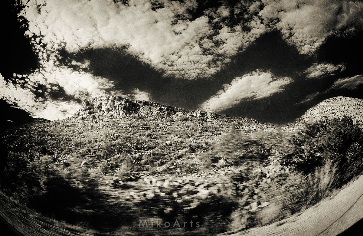 I had some Ilford still loaded in my 35mm Minolta, with my Rokkor 16mm F2.8, and had just been test-sighting the lens, when this lovely work of New Mexico's Mother Nature appeared, and I snapped. I was astonished weeks later, as that was how long you had to wait sometimes for your film and photos to be developed, especially specialty infrared film. Astonishing was how an accidental moment caught so many intricate beauties of the Southwest.