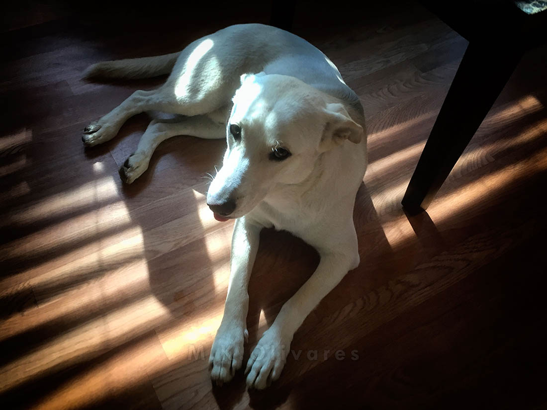 This portrait is from a picture I took of him on his first walk through a remote forest, completely off leash, finally away from all those things of his past. He's finally able to roam, to wander, and to really tap into his primal, ancestral doggie-skills that I think, he's been waiting his whole life to express!