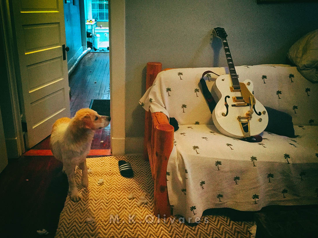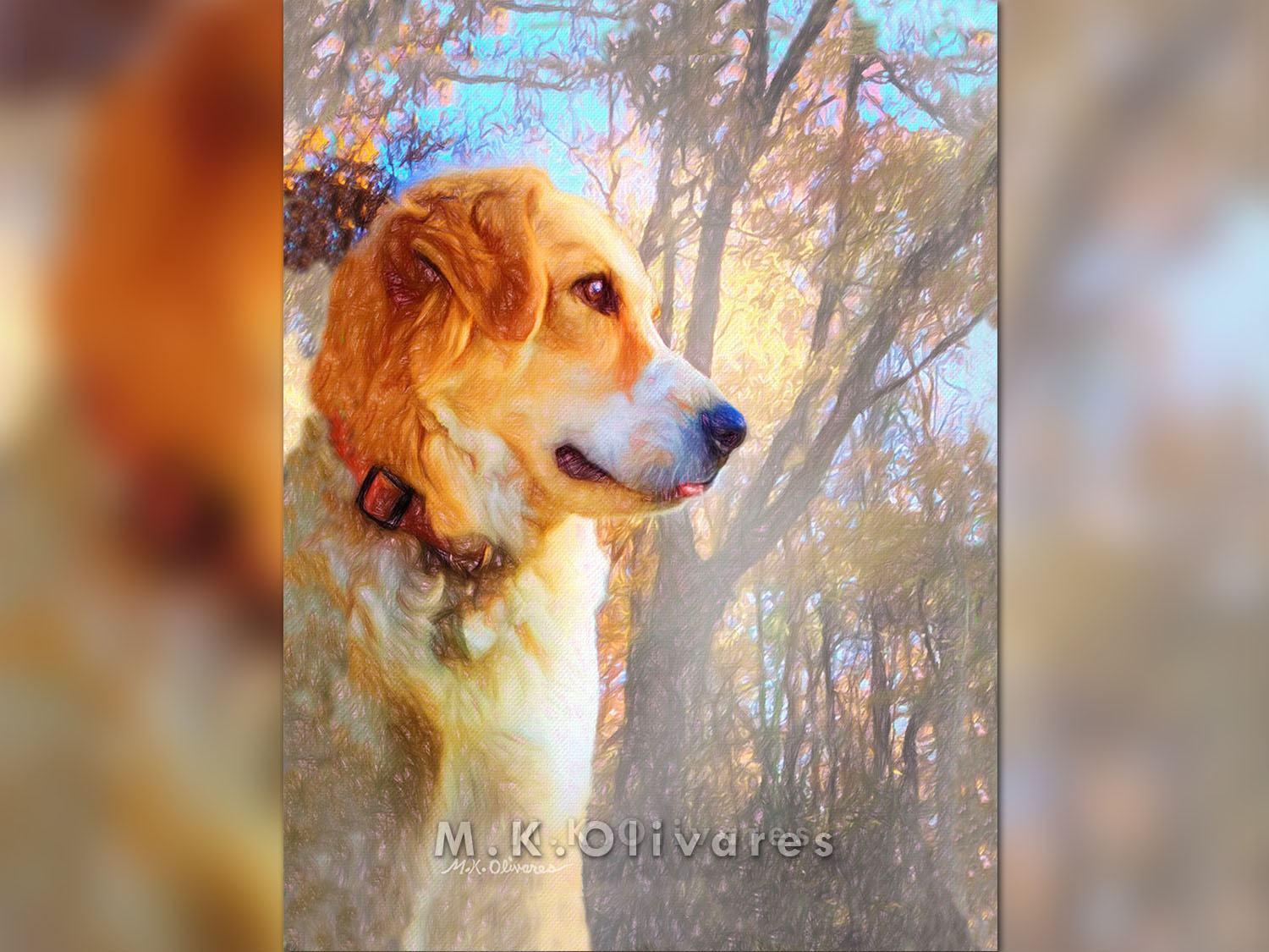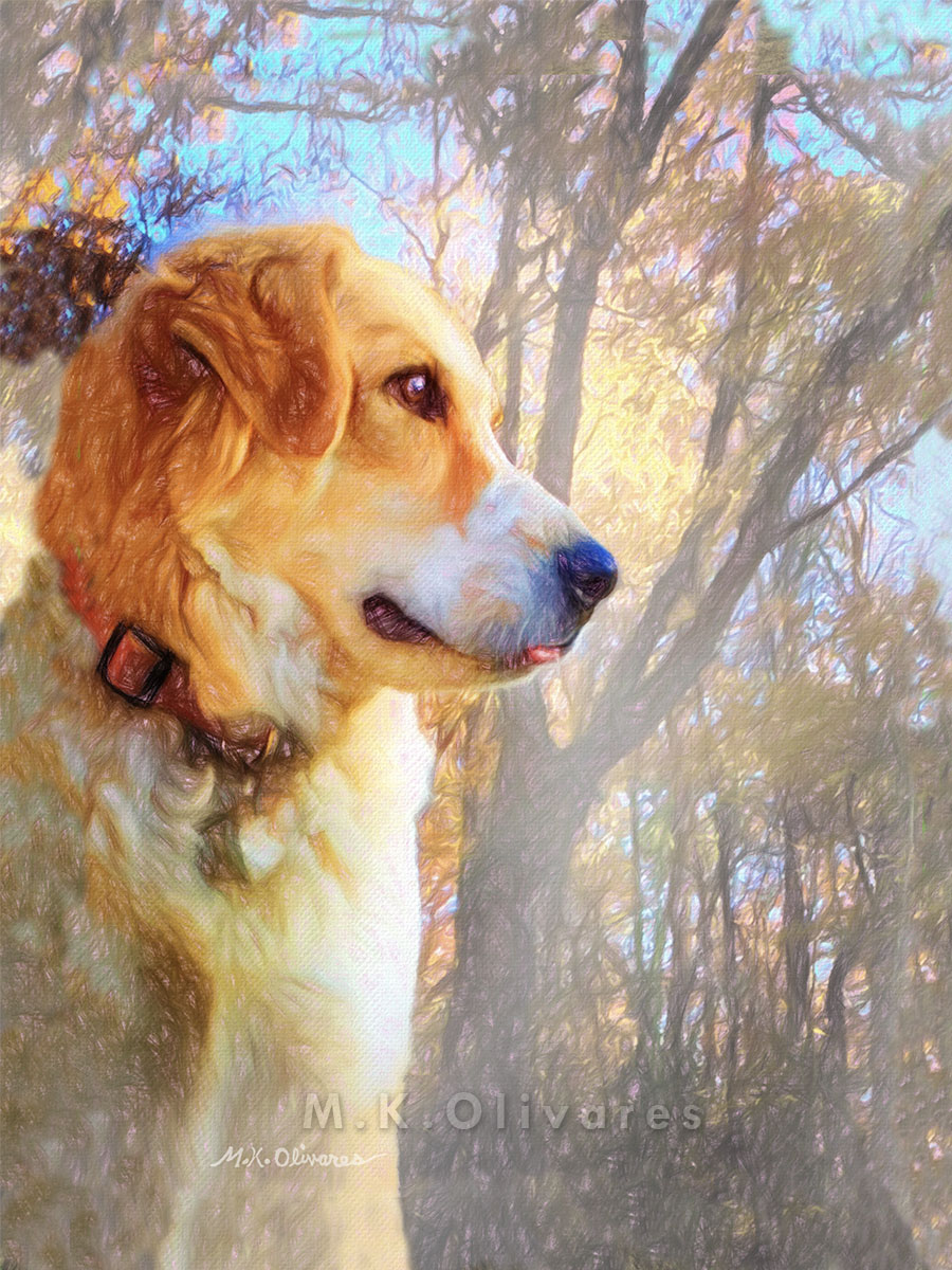This painting got inspired by one of those moments she was just sitting in the park, taking everything in. It was a cool morning, and she was out on her first official "Play Day" where she got to go run and meet and play with all the other city dogs who came to the local park. I saw her briefly just sitting there, observing everything like she was deep in appreciation.