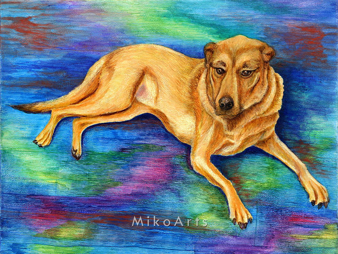 Sanford Chillin', 1 of 2 Doggie-Paintings, Pastel & Copic on Canvas
