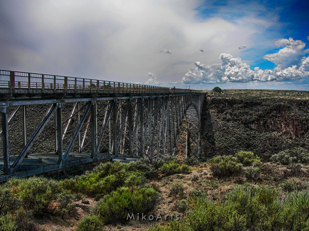 The Taos Gorge bridge is one of those handfuls of things in the Southwest Desert you can easily get to and visit in just a car or motorcycle drive. It spans the heavenly gap of the Rio Grande river, about 10 miles from Taos, New Mexico. This place is such a soulful, rejuvinating experience with Nature and Engineering, that pictures can only hint at!